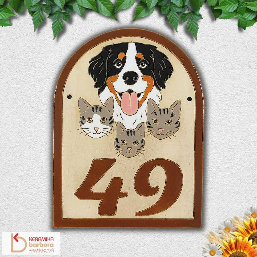 Ručně ryté a malované keramické domovní číslo na fasádu či zeď se psem a kočkami potěší každého majitele psích a kočičích mazlíčků.