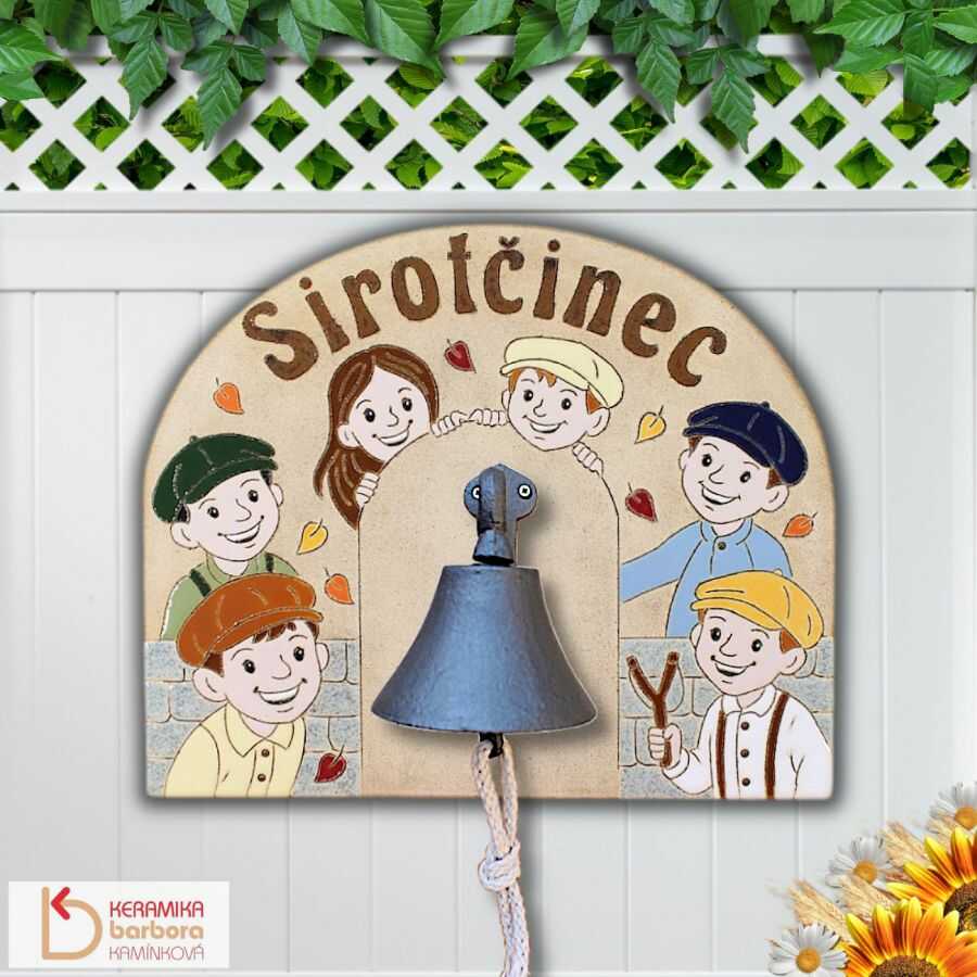 Litinový zvonek na keramické kachli zdobené obrázkem dětí ocení každá babička, která se těší na hlídání svých vnoučátek.